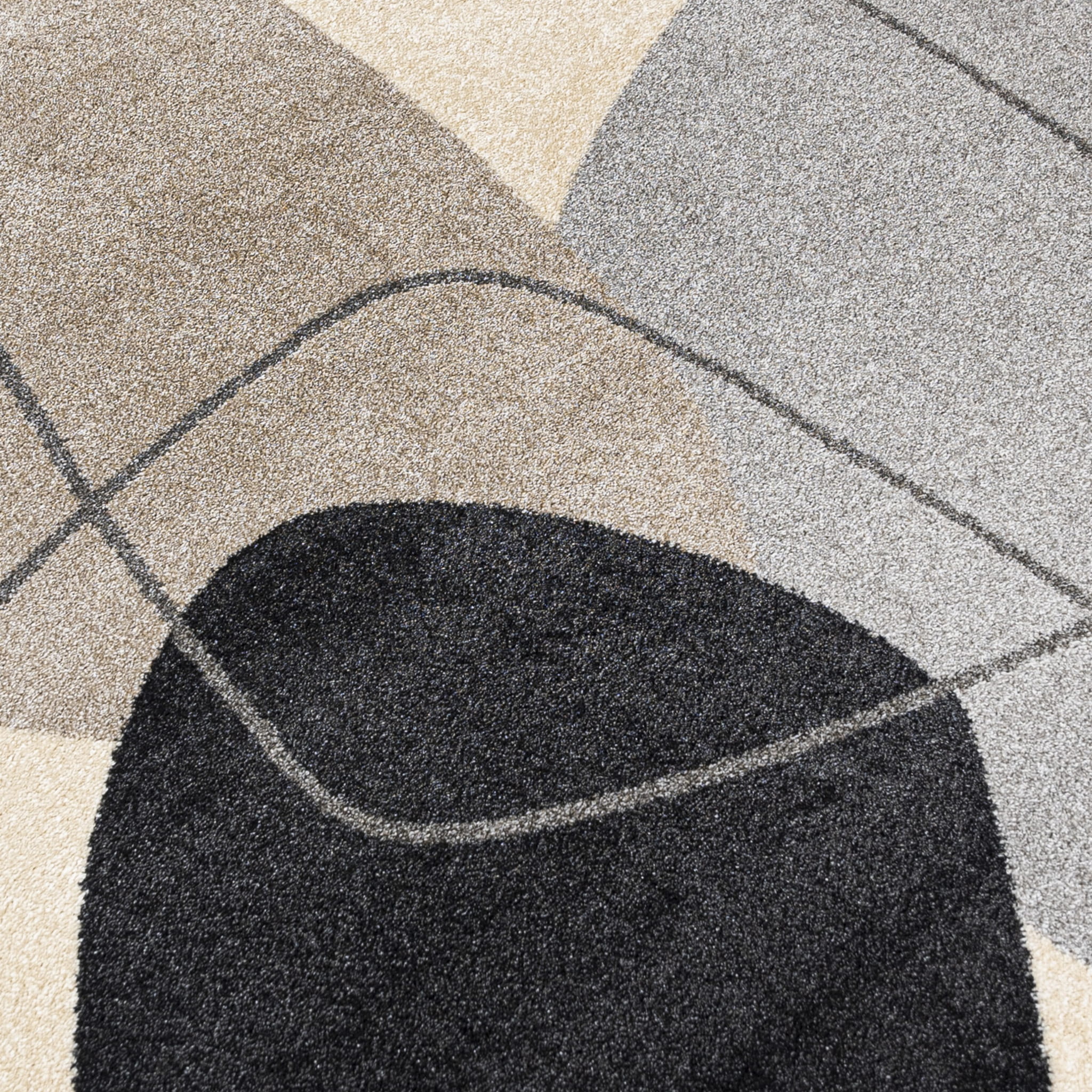 Utrzymany w neutralnej kolorystyce – szarościach, beżach i czerni – dywan świetnie komponuje się z różnymi aranżacjami wnętrz, wprowadzając do nich elegancję i spokój. Idealnie sprawdzi się w przedszkolach, żłobkach, świetlicach oraz salach do relaksu i zajęć grupowych.