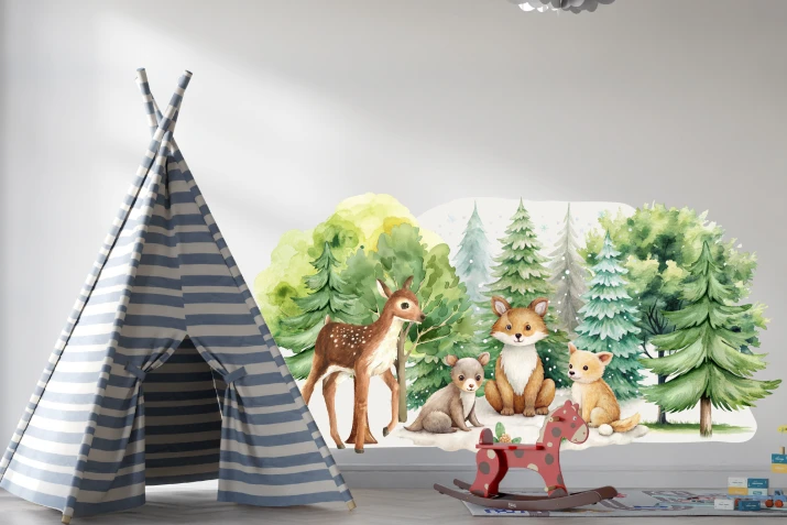 Naklejka na ścianę - las i jego mieszkańcy