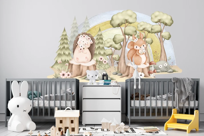 Naklejka na ścianę - przyjaciele z tęczowego lasu