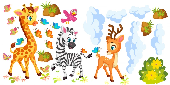 Naklejka na ścianę - zebra, żyrafa i spółka