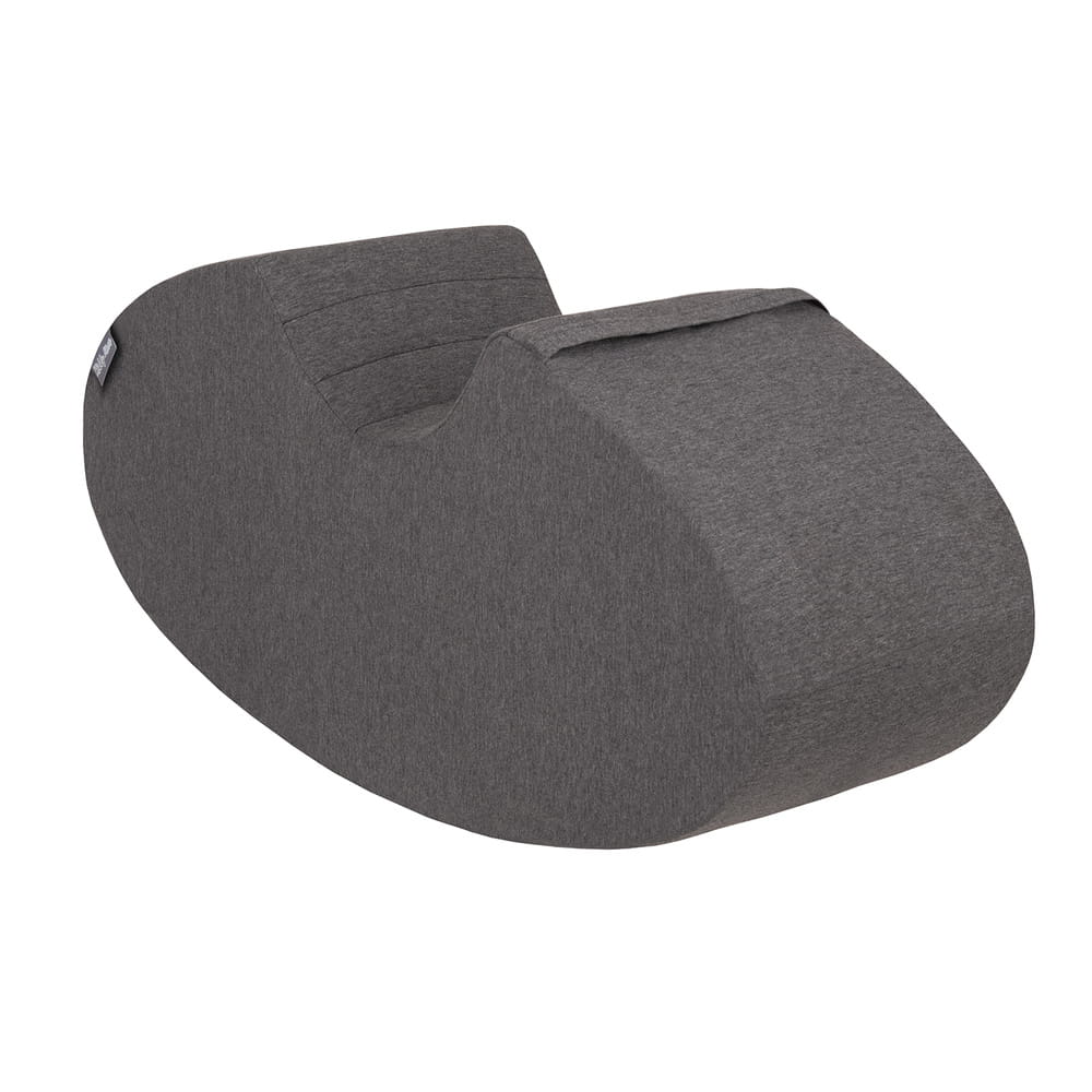 Skoczek został wykonany z lekkiej, elastycznej pianki, dzięki czemu jest bezpieczny i łatwy do przenoszenia. Jego przyjazny kształt oraz piękne pikowanie na górnej części sprawiają, że świetnie komponuje się z aranżacją dziecięcych wnętrz. Stonowany odcień ciemnej szarości nadaje zabawce nowoczesny, uniwersalny charakter, który świetnie wpisuje się w każde wnętrze.